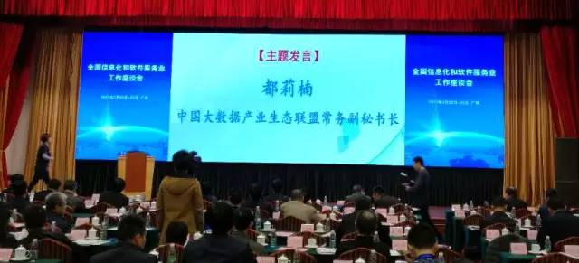 作为唯一参会的联盟组织,中国大数据产业生态联盟常务副秘书长都莉楠代表联盟出席工作座谈会,并向来自工业和信息化部主管部门的领导及全国各个省市经信委的领导汇报联盟工作进展。