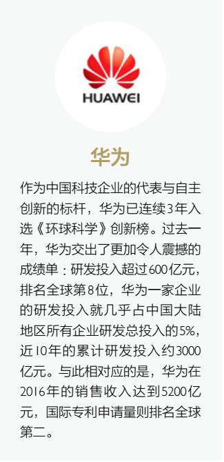 2016年,企业投入的研发经费占中国所有研发经费的78%以上,在很多领域,中国科技企业开始成为行业甚至世界领先者,他们推出的新产品、新技术,开始吸引着全世界的目光。正是这些表现优异的科技企业,让我们得以描绘出一幅充满生机与活力的中国创新图: