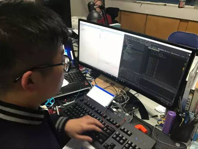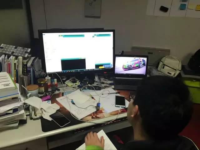 还是先来看看前方的准备情况吧?学生们正在抓紧准备自己的DEMO,实验室的负责人侯宏仑博士亲切地称他们是"孩子们"。