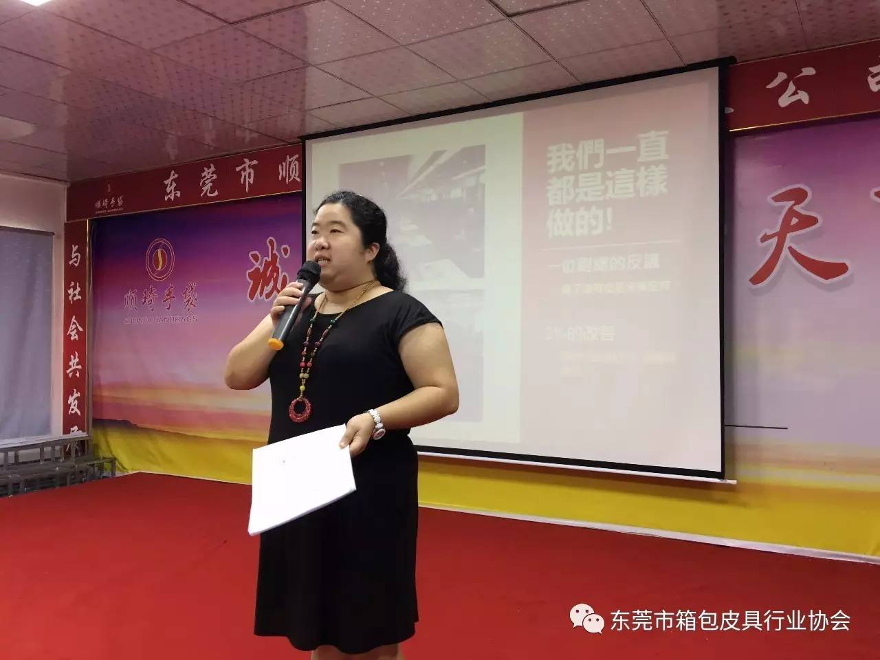 7月27日下午,由东莞市中小企业服务机构协会联合东莞市箱包皮具行业协会、皮革鞋业协会、五金饰品行业协会共同举办的“智能制造全生态链之精益生产专场培训”在东莞市箱包皮具行业协会会长单位顺琦手袋会议室如期举行。