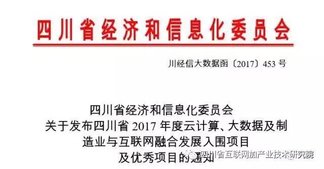 近日,在《川经信大数据函[2017]453号》红头文件发布的入围项目中,我院多个合作、链科云会员企业成为“四川省2017年度云计算、大数据及制造业与互联网融合发展入围项目”,本次我院入围的项目涵盖工业云平台、数字化制造转型升级、云服务应用、政务服务、以及大数据安全等多个领域,共有9家企业入选,并有2家企业被评为优秀企业。