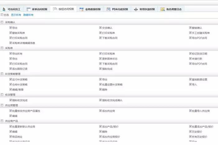 有300多个功能权限设置,60多个系统按钮权限,让员工的工作内容更加清晰,职责分明: