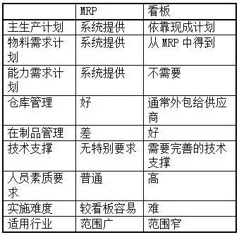 实施看板管理的企业不仅仅要求员工能在正常情况下进行标准化作业,还要求员工能尽快解决生产过程中的各种突发问题,保障生产流程的顺畅。总体而言,看板管理对人员素质要求高于MRP 。