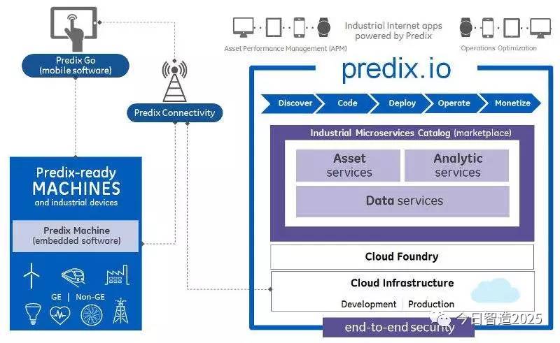 国外的典型应用有通用电气的PredixCloud平台,负责将各种工业资产设备和供应商相互连接、接入云端,并提供资产性能管理和运营优化服务,可以存储、分析和管理机械的实时数据,监测实时数据来实现监控工业产品,利用过往数据来预测设备状态等。