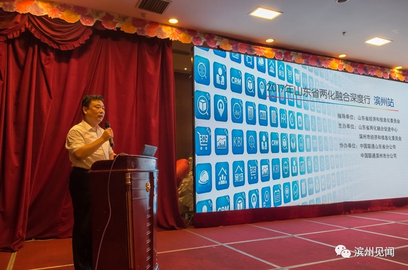 7月27日,由山东省两化融合促进中心、滨州市经信委主办,中国联通山东分公司协办的山东省两化融合深度行滨州站活动在大学饭店举行。