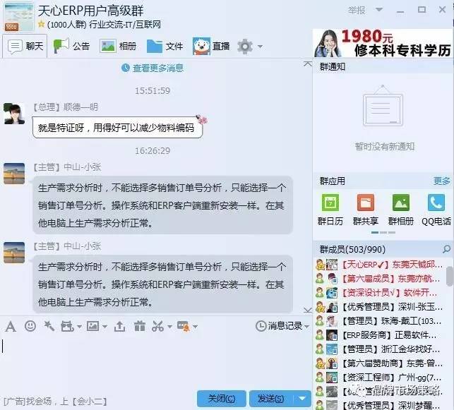 以上两个群一个是PLM的行业群,另外一个是我们自己天心的,都是人数接近1000人左右的群