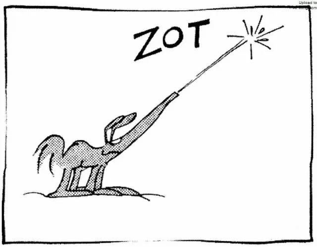 “Zot”激光指示器的得名即来源于此:上图中的这只食蚁兽是美国漫画大师约翰尼?哈特(Johnny Hart)那广受欢迎的连环漫画《公元前》中的角色,它那像闪电一样迅速的舌头在伸出时就会发出类似“Zot”的声音