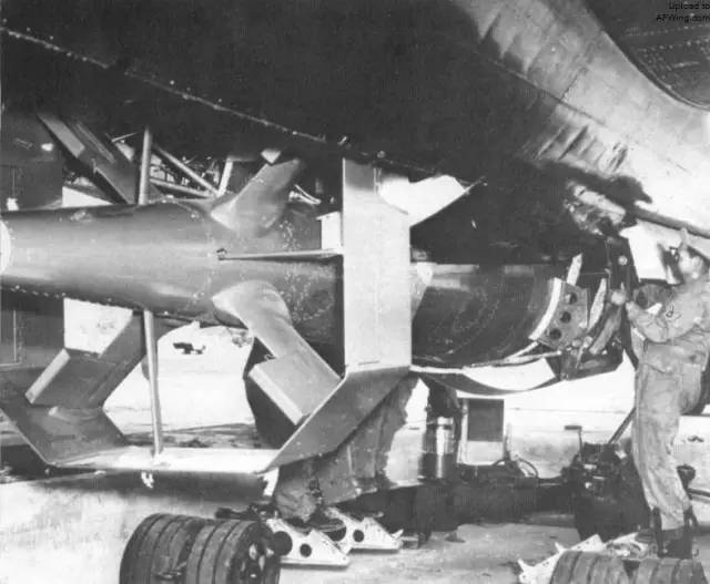 挂载在B-29轰炸机机腹下的“塔松”炸弹