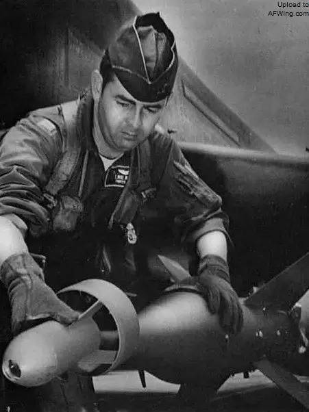 托马斯?梅塞特上尉(Capt. Thomas Messett)正在对他的F-4战机上挂载的一枚2000磅的激光制导炸弹进行检查