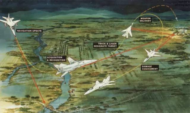 与弹药相比,更重要的是“铺路大头钉”(Pave Tack)目标指示吊舱,该吊舱将激光指示器的瞄准系统调整为红外传感器,从而具备了夜间攻击能力。“宝石路Ⅱ”和“铺路大头钉”在1986年的“黄金峡谷”作战行动中首次亮相,在这次作战行动中,F-111战机在空袭中使用激光制导炸弹轰炸了利比亚。