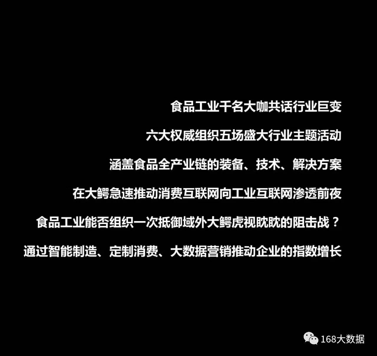 欢迎国内外一线食品品牌企业、食品装备行业的CIO、CDO、营销高管、生产高管、食品行业互联网+大数据服务商参加,共同探讨大数据精准营销、数据分析、云计算、智能制造、智慧工厂、智慧供应链、物联网、工业机器人、电商、区块链等新技术在食品行业的应用实践,此次峰会意在搭建食品产业与新技术跨界融合的交流合作平台,堪称中国食品产业互联网最具影响力的年度千人盛会!