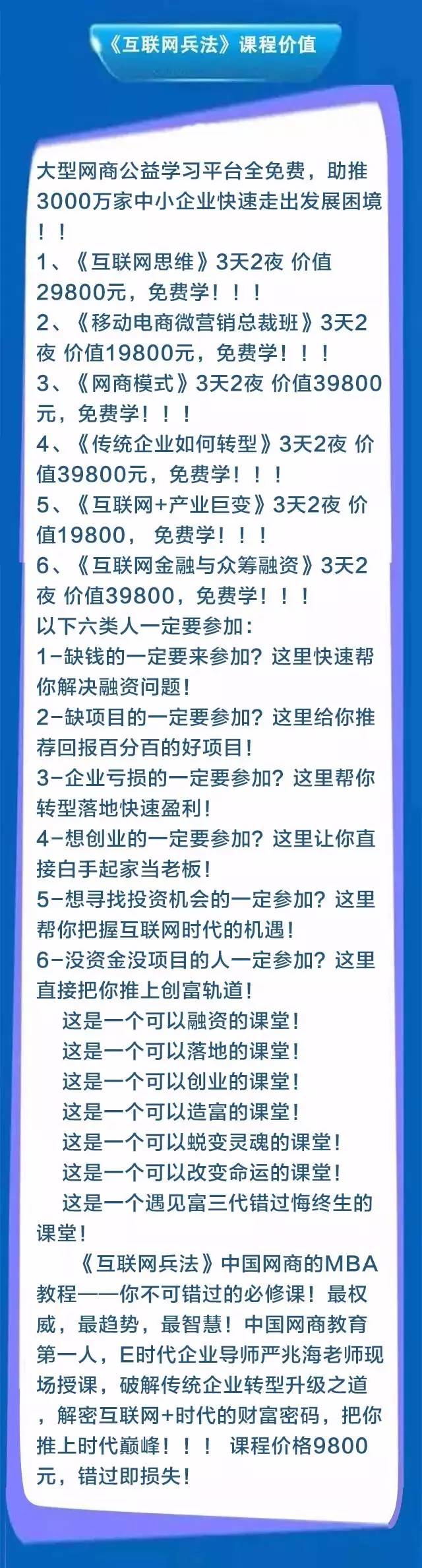 活动要求正装出席,携带公司及项目资料,提前报名,谢绝空降!