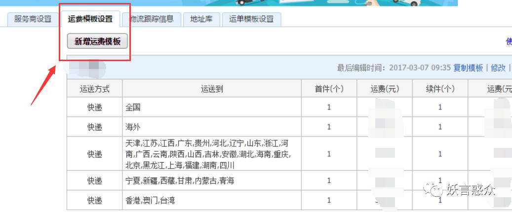 17、运费模板一定要设置,不要图省事直接卖家包邮,利润不高的产品如果被偏远地区或港澳台的客人买了后你就体会到心痛的滋味。土豪请无视;