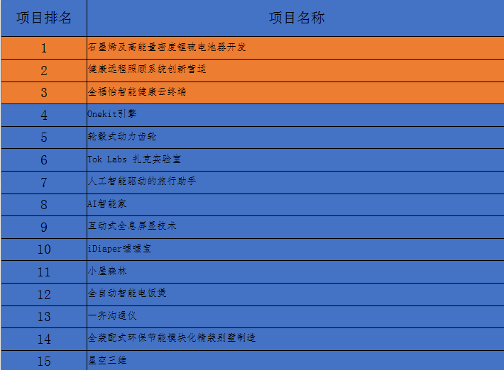 本次大赛经过前期严格筛选,共15个优秀项目进入了本次大赛,每个路演完毕后,投资人对项目进行点评,评分方式:每个项目打70-100分,去掉一个最高分和一个最低分,平均得分为最终得分,项目最终得分如下: