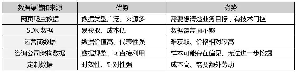 数据来源可以分为企业内部数据和外部数据。内部数据可以使企业各系统的数据、也可以是网页/产品埋点、收集、整合所获得的数据。一般来说,还有一些外部渠道获取数据: