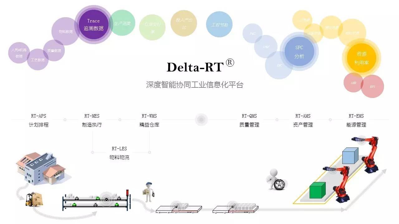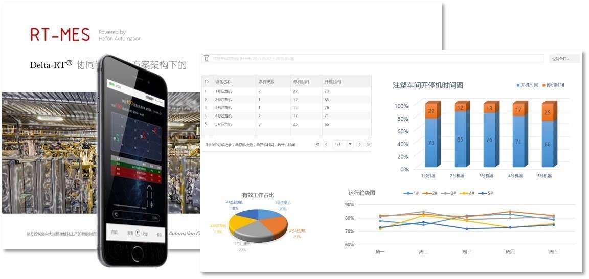 昊方控制Delta-RT深度智能协同工业信息化平台下的RT-MES制造执行管理模块,在传统生产管理系统基础上,增加智能处理模块,以精益的理念进行设计。通过物联网技术,与智能加工设备,或数据采集检测设备相连,自动获取过程数据,通过智能处理模块处理后,系统自动将操作指令下发到智能加工设备、智能控制设备、可穿戴设备、移动设备等。实现自动数据采集、智能判断、自动执行;同时根据过程实际数据进行深度数据挖掘与分析,提供决策支持。