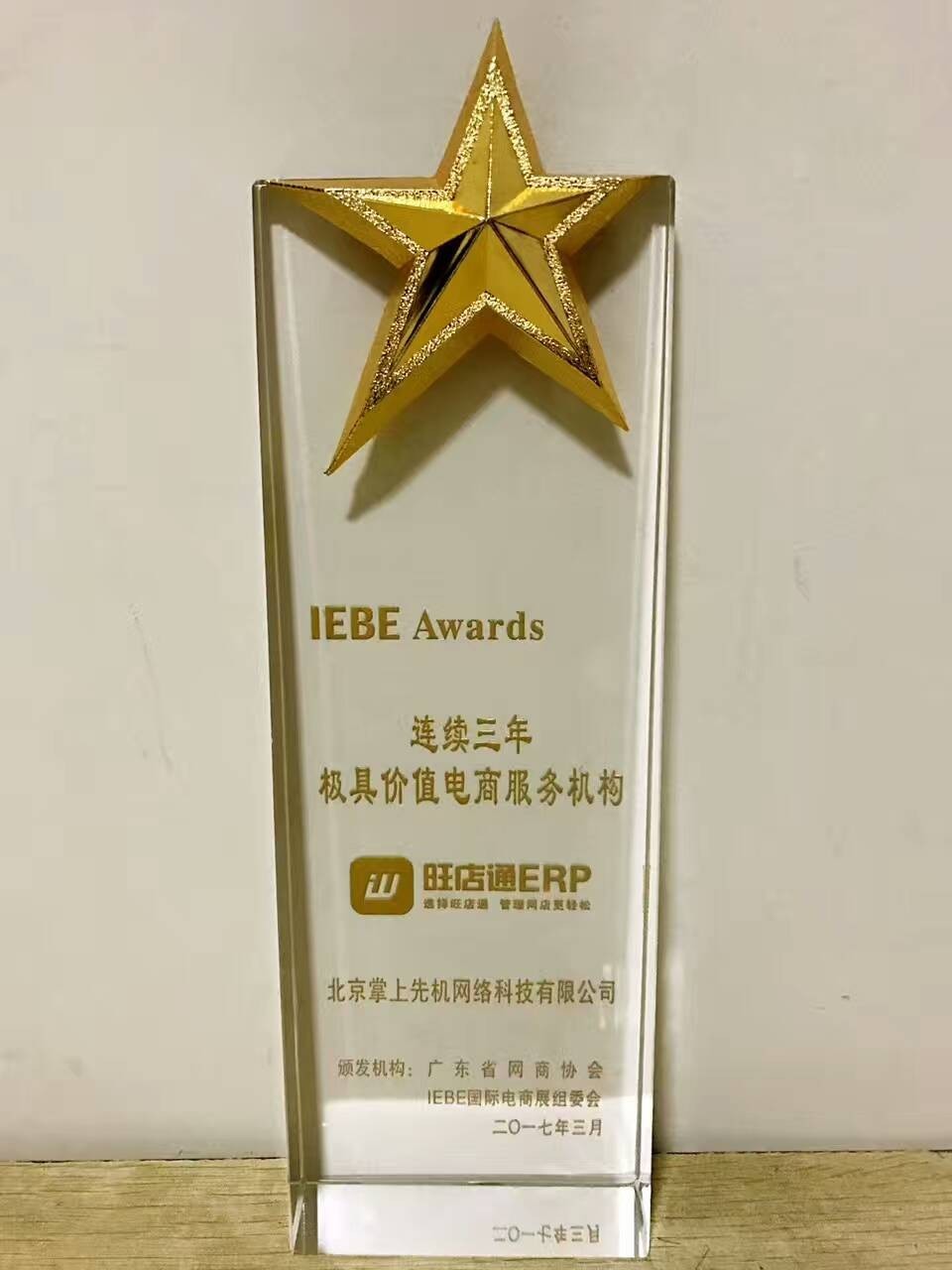 作为博览会的重要环节,在当晚举行的广州“花”之夜暨国际电商展(IEBE Awards)颁奖典礼上,旺店通ERP凭借着优质的服务和出色的后台管理能力,斩获了“连续三年极具价值电商服务机构”的荣誉。