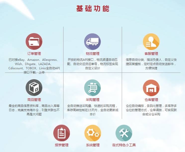 产品服务旗下产品包括:马帮ERP软件、WMS仓储管理系统、电子商务ERP定制解决方案、镖局物流、小马帮、销售刊登管理系统等等。