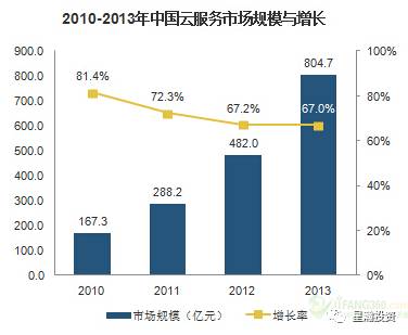 中国云计算市场规模正以超过70%的年均复合增长率快速增长,至2014年末已突破了1000亿元。据阿里云总裁王文彬表示,云服务将催生中国下一个万亿级市场,市场前景广阔。从细分结构来看,近90%仍然是在IaaS,SaaS占到接近10%,在PaaS所占的比例规模最小,但是这一块发展速度也将很快。