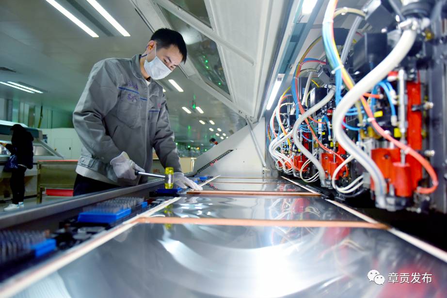 ▲赣州市深联电路有限公司的工作人员在检查电镀产品。