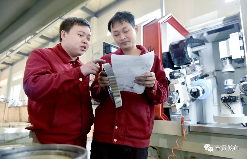 ▲章贡经开区赣州经纬科技股份有限公司,工人们正在新采购的磨齿机前加工齿轮。
