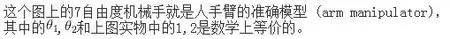 在这张图上,一个机器人的手臂由基座、两个关节、两根连接件构成(想象把一个圆规打开,然后把一端用手指捏住)。