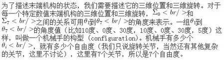 至于为什么人手臂是7个自由度,而不是8个也不是6个,可能是因为上帝非常懂机器人控制,下面尽量简单地介绍一下。首先介绍一个定理:6个自由度的机械手,在空间中无法在保持末端机构的三维位置不变的情况下从一个构型变换到另一个构型。这个定理乍一看很不好理解,可以考虑一个更简单的情况: