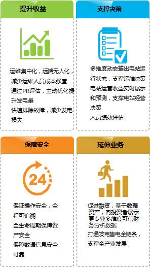 通过智能物联和大数据技术实现多个分散偏僻电站集中监控,实时掌控电站运行状态,可实现无人值班、少人值守,并建立基于设备状态检修的运维方式