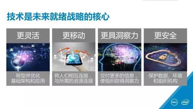 因此,对于企业用户来说,技术应用是未来就绪战略的核心。在选择厂商与技术战略时,需要考虑技术灵活性,必须具备数字化转型并优化基础架构和应用的持续可靠的能力,并且不被某一个厂商所绑定。还需考虑移动性方面,如何具备更强的资源连接。也需要具备更高的洞察力,有能力交付更多的信息。从而可以实现更安全、更可靠的数据管理、数据环境。