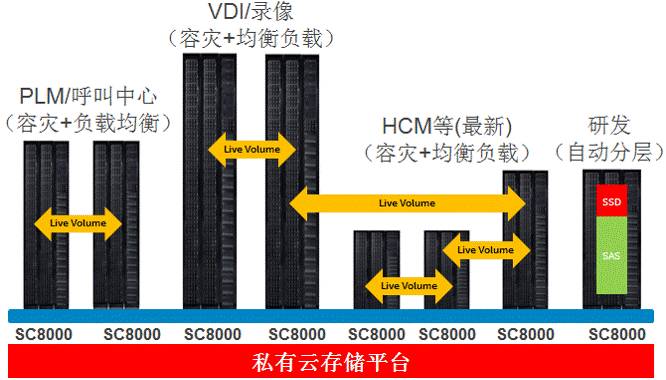 在具体应用部署上,Live Volume将多套存储打通构成一个综合存储平台,彻底消除存储孤岛。在简化运维方面,通过Live Volume技术帮助用户实现应用不停机情况下的设备故障修复。同时,戴尔SC8000存储具有很强的扩展能力和综合性能,帮助用户满足VDI和核心数据库的性能压力需要。