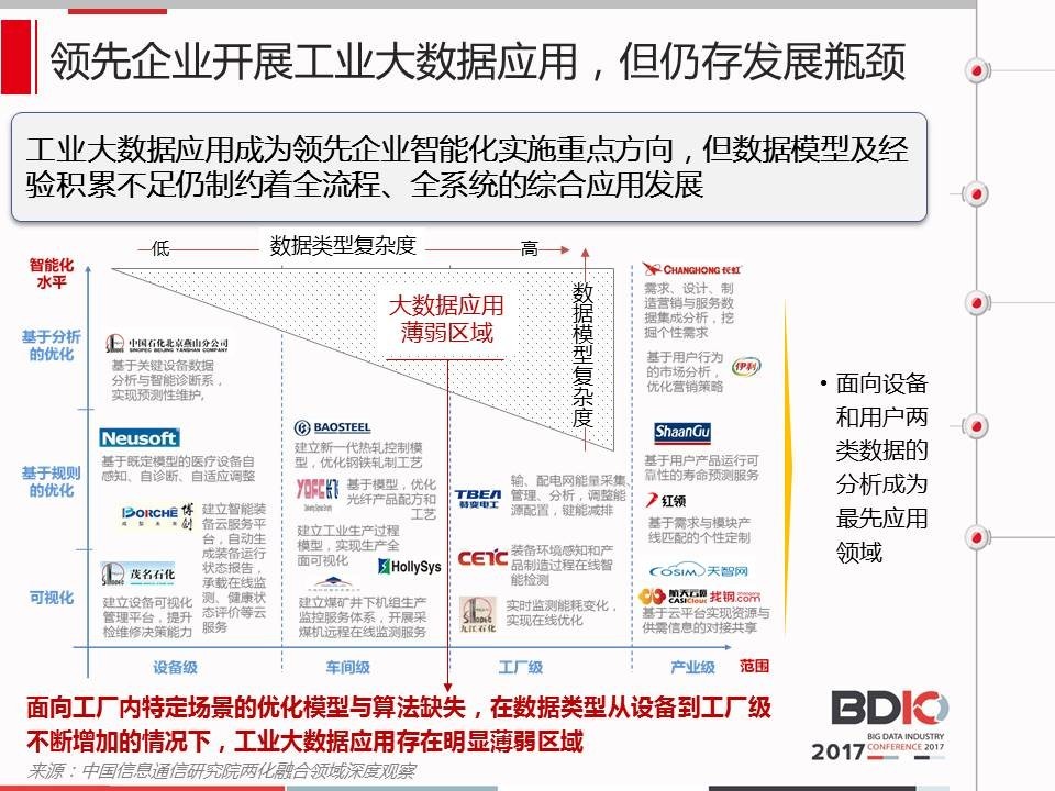 中国信息通信研究院两化所副主任田洪川在近期举办的“2017大数据产业峰会”上发表了题为《中国工业大数据实践及应用评估》的演讲。