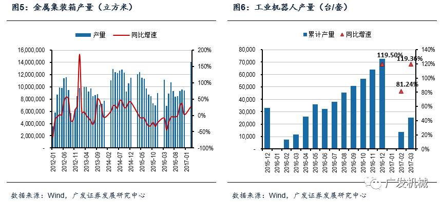 数据追踪:4月金属集装箱产量7,535,000立方米,同比增长9.35%,已连续7个月增速转正;1-4月累计产量36,134,000立方米,同比增长35.88%; 3月工业机器人产量9,782台,同比增长57.4%;1-4月累计产量35,073台,同比增长33.95%。