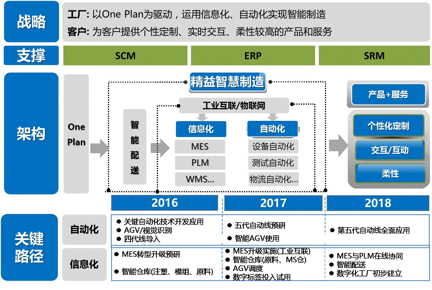 基于工业能力提升的战略指引,以工业互联及两化融合构建智慧工厂,实现柔性生产、个性化定制的目标(如图1)。
