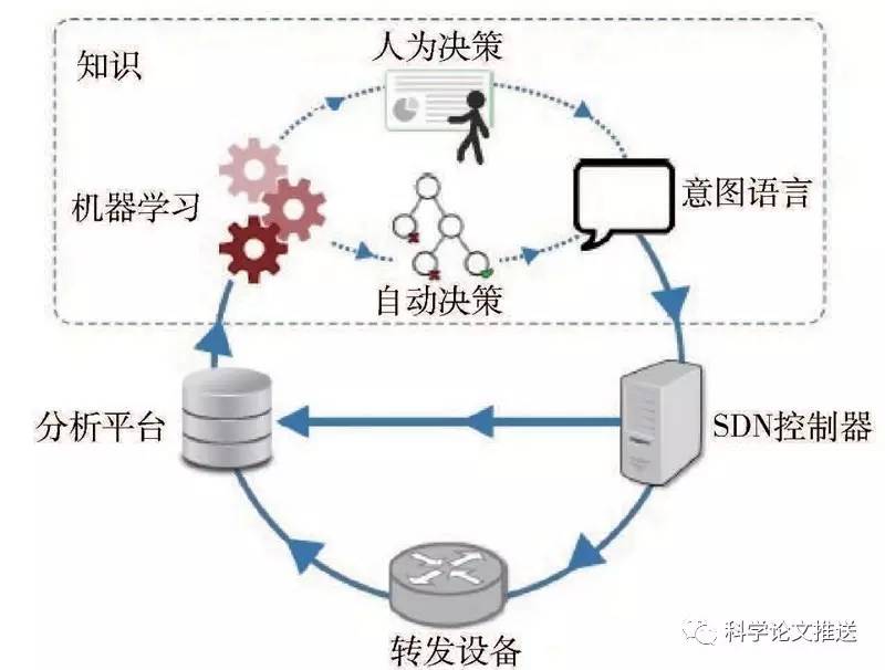 KDN是一种将人工智能技术融入网络的新型网络架构,它以SDN为基础, 在集中式网络分析平台中利用实时分组信息、配置信息和网络状态监测数据进行智能决策, 并通过控制器下发指令, 实现网络的智能管控[39].
