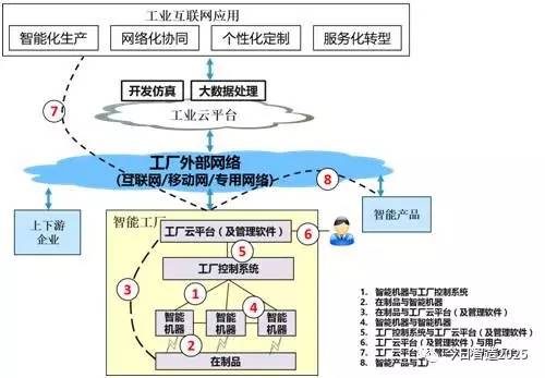 三类企业主体包括工业制造企业、工业服务企业(围绕设计、制造、供应、服务等环节提供服务的各类企业)和互联网企业,这三类企业的角色在不断渗透、相互转换。七类互联主体包括在制品、智能机器、工厂控制系统、工厂云平台(及管理软件)、智能产品、工业互联网应用。八种互联类型包括了七类互联主体之间复杂多样的互联关系,成为连接设计能力、生产能力、商业能力以及用户服务的复杂网络系统。