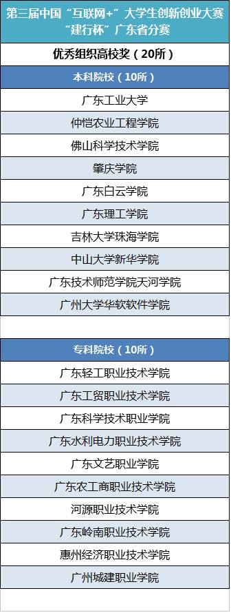 8月4日,第三届中国“互联网+”大学生创新创业大赛“建行杯”广东省分赛顺利完成所有赛事,在广东工业大学圆满落幕。省决赛最终决出本届省赛金奖12名、银奖24名、铜奖44名,并在我校大学城校园大讲堂报告厅举行颁奖仪式。省委教育工委书记,省教育厅党组书记、厅长景李虎,省教育厅副巡视员邱克楠,大赛承办单位广东工业大学副校长陈为民、副校级干部张学理,中国建设银行广东省分行行长刘军、副行长王燊,大赛协办单位省教育厅关工委主任、省高等学校毕业生就业促进会会长王玉学,省大学生创业就业促进会常务副会长蒋宗骁,省科技厅副厅长郑海涛、省财政厅副巡视员崔亚宗、团省委副书记武一婷,省经信委中小企业局服务体系建设处、省公安厅网警总队、省人社厅创业指导处、省教育厅相关处室负责人,来自省内外的专家评委、全省高校主管就业创业工作的校领导和就业创业工作部门主要负责人、参赛项目团队代表和指导老师共500多人出席。
