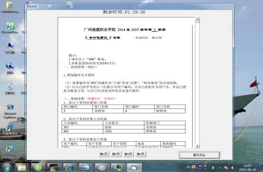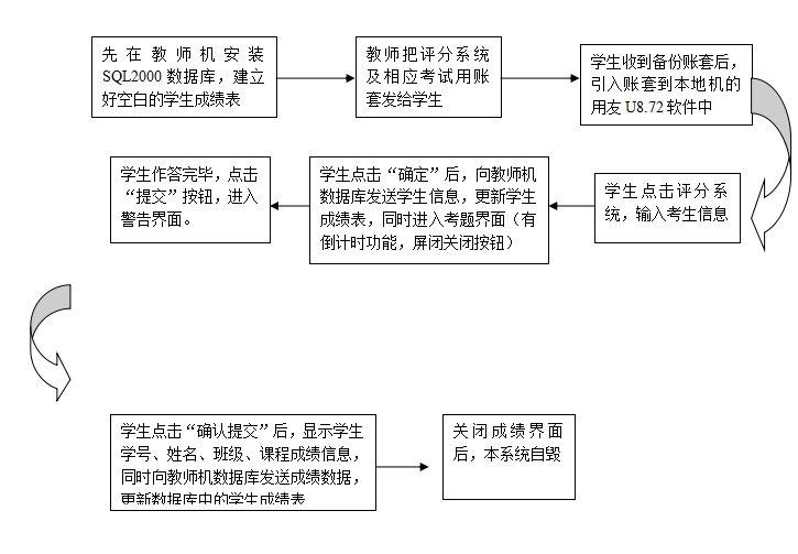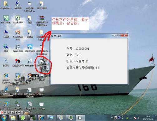 本人经近一年夜以继日的刻苦研发,终于制作出能对当前“会计电算化”期末考试考卷进行即时评分的系统。本系统可达到客观公正、高效地评价教学效果的目的。从此,教师们将不再有,因学生缓交作业图片或所交图片不全导致评分不及时、评分不全的烦恼;不再依赖用友公司而委曲求全地进行期末考核;不再需斥资向软件公司订做评分系统,总之,这种开发效益是显而易见的。