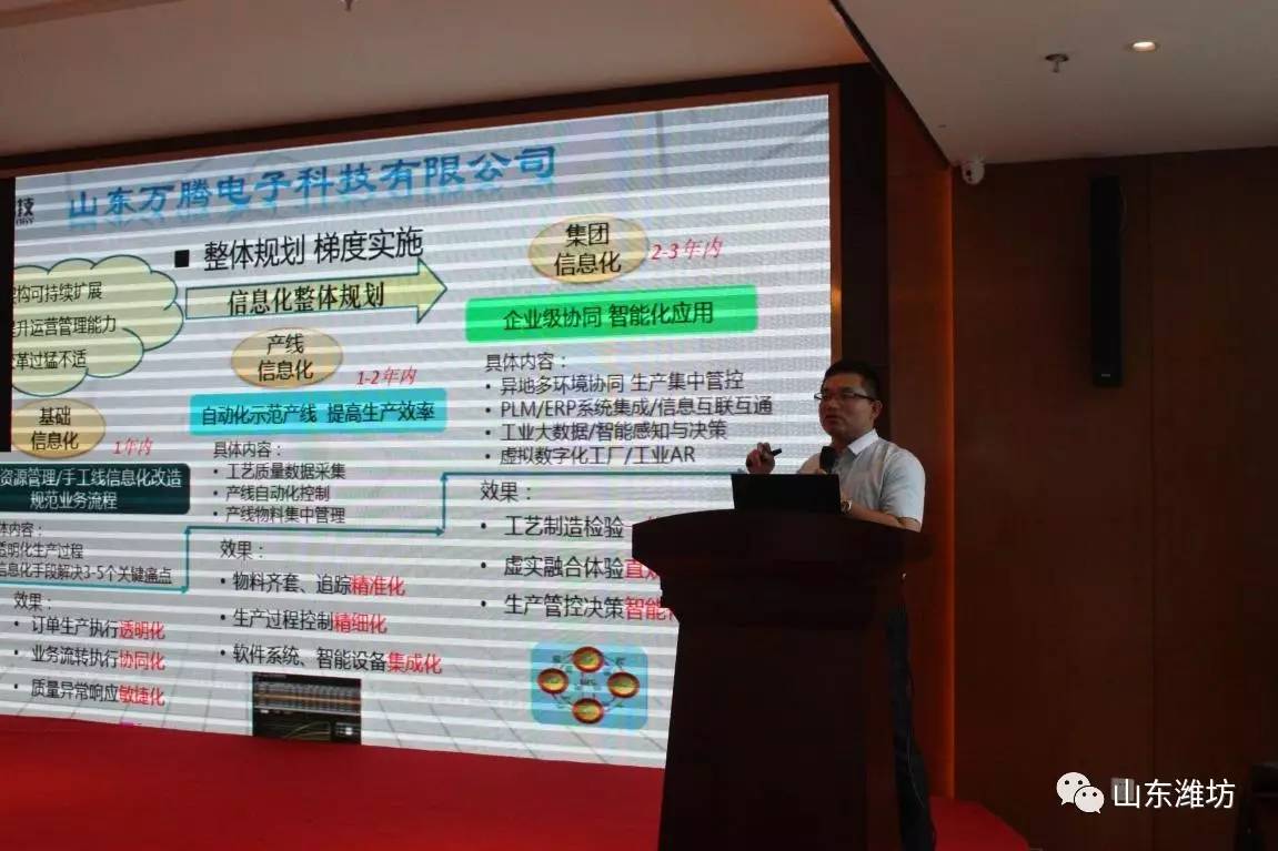 山东万腾电子科技有限公司是国家高新技术企业,被评为“智能制造2025(工业4.0)智能工厂整体解决方案领军企业”,并参与“中国智能制造2025标准”的定标及贯标。主要提供工业4.0解决方案及实施、定制化自动装配流水线、工业级AR解决方案。近期市工转办已将其引进潍坊开设了分公司,该企业将努力为潍坊企业打造一个扎实、可靠、全面、可行的制造协同管理平台,助推我市工业企业智能制造进程。
