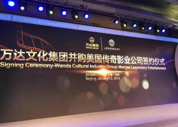 2016年1月12日上午,万达文化集团收购美国传奇影业公司一事在北京正式举行签约仪式。万达集团将以不超过35亿美元现金(约230亿元人民币)100%全资收购美国好莱坞知名影视制作公司传奇影业,这也是中国企业在海外最大的一笔文化并购。传奇影业董事会主席兼CEO托马斯·图尔将留任,继续负责公司的日常经营。