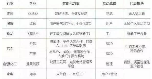 不同行业的智能化方案和代表机遇