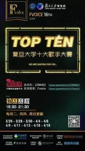 3、日前,复旦大学“十大歌手”大赛正式开启。此次赛事与全民直播平台深入合作,通过直播间实时呈现赛况。
