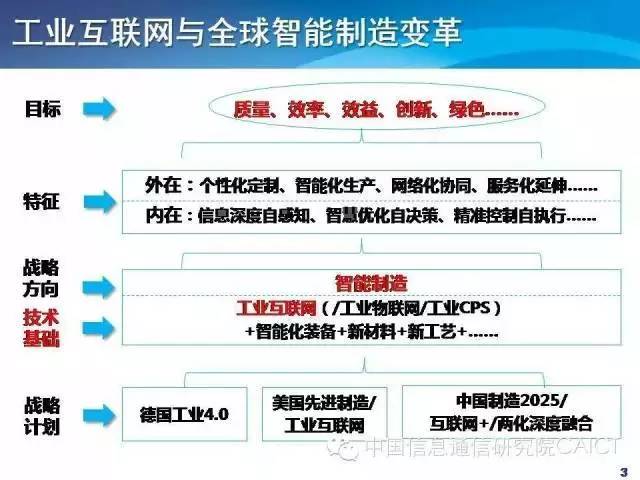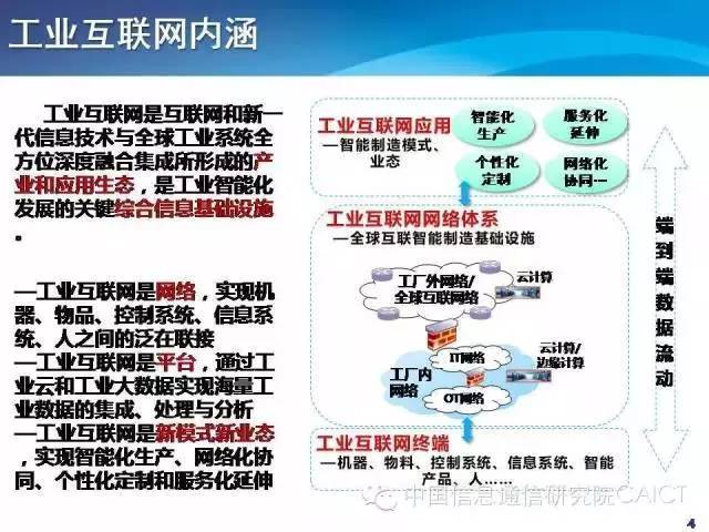 互联网是全球互联的基础设施,工业互联网架构在现有的公众网络上,针对工业有增强和演进。所以信息基础设施是很重要的一环。在网络层面,除了大网还要考虑工厂内部网络信息化和信息控制系统的发展建设。