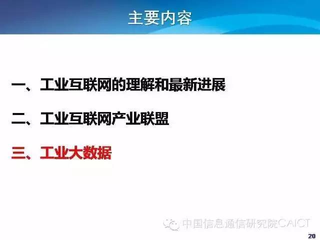 从三个方面进行介绍,一是工业互联网的理解和最新的进展。二是工业互联网产业联盟。2月1号工业互联网产业联盟成立,4月7号召开开工作组会议,想把情况跟大家分享。三是对工业大数据的认识。