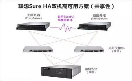 ●存储共享型:较为经济的一种方式,两个服务器共享一台存储设备存储核心数据