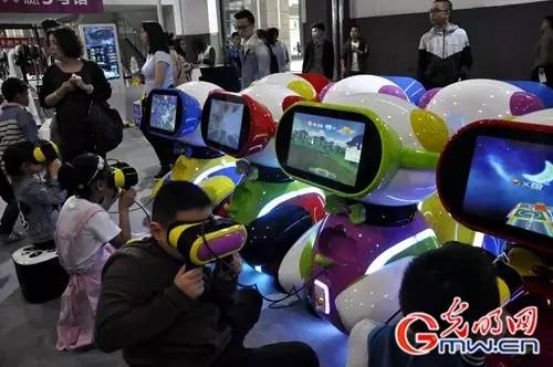 今年上半年在贵阳2017数博会现场,VR(虚拟现实)新应用趣味十足,吸引不少青少年围观体验。李政葳 摄