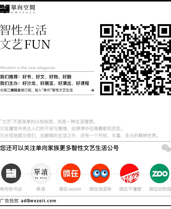 单向空间成立十年来,以高质量的文化沙龙闻名全国。汇集了中国大陆乃至港澳台等华人地区最有思想和创造力的精英嘉宾。莫言、陈丹青、白先勇、严歌苓、田沁鑫、贾樟柯、赖声川、柴静、梁文道......在这里,你可以遇见所有你想见到的人。