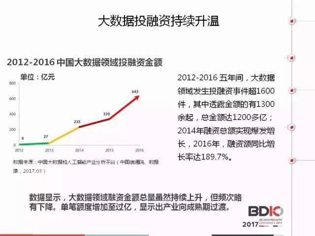 数据显示,大数据领域融资金额总量虽然持续上升,但频次略有下降。单笔额度增加至过亿,显示出产业向成熟期过渡。