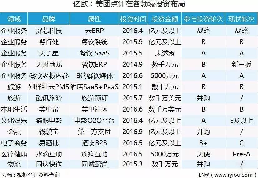 其实,在成立产业基金前的过去三年,美团点评公司已在餐饮、旅游、生活服务等产业链上下游投资,超过20个项目。亿欧盘点了美团点评过去投资的代表项目,意在还原王兴的本地化服务布局方面的探索。