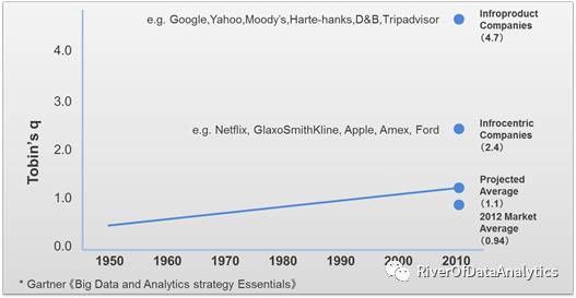 在过去的60多年中,Tobin’q(企业市场价值与资本重置成本之比)从0.5增长至1.1,数据以无形资产的形式对企业市场价值的杠杆作用正在逐步增加。那些认真对待数据的企业获得了金融市场的回报,例如,以Apple、Netflix等为代表的“以信息为中心”的企业(Tobin’q=2.4,即企业创造的价值是其投入资产成本的2.4倍);以Google、Tripadvisor等为代表的“信息产品”企业(Tobin’q=4.7,即企业创造的价值是其投入资产成本的4.7倍)。