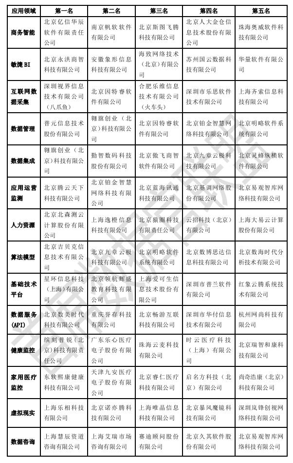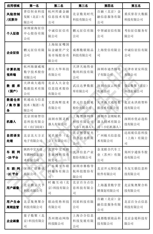 前海梧桐系基金投资的数据堂、百分点、敬众数据、中科金审、暴风魔镜均上榜,其中部分企业在多个细分市场进入前三名。